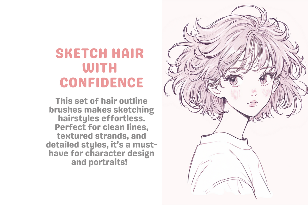 This set of hair outline brushes makes sketching hairstyles easy and fun. With smooth, clean line brushes and textured options, you can create detailed and natural-looking hair for any character or portrait.