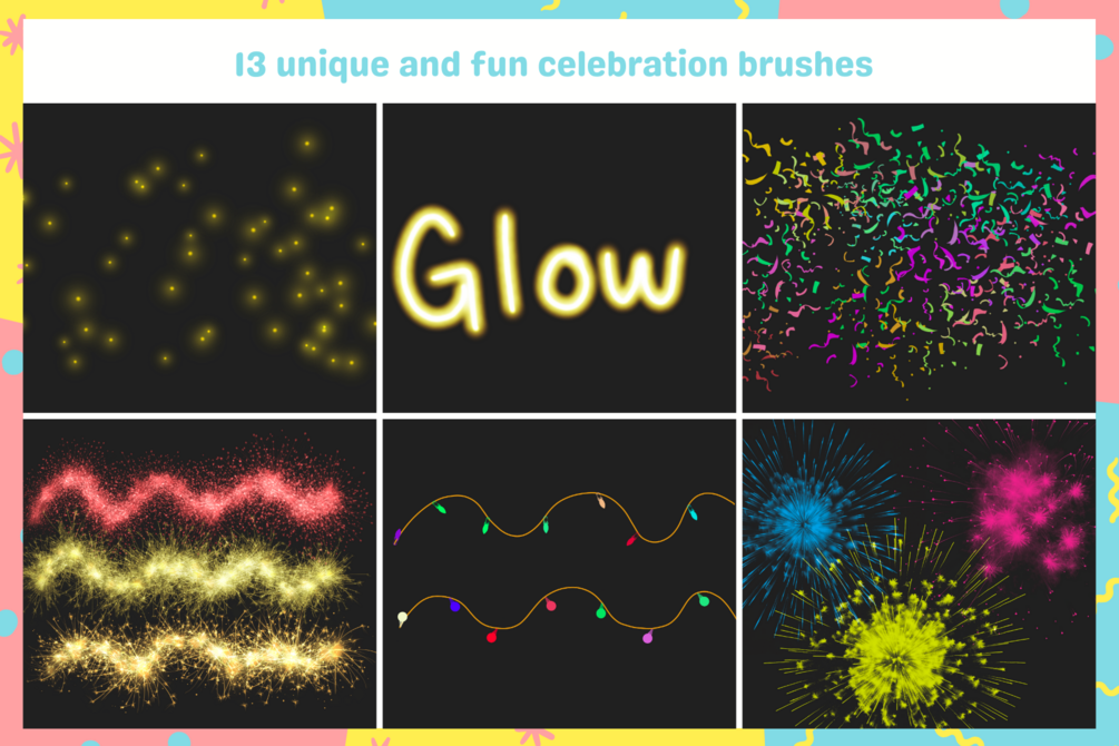 Get ready to light up your art with 13 festive celebration brushes! From sparkling fireworks to cozy Christmas lights, this set has every brush you need to bring a little magic and glow to your work. Perfect for party scenes, holiday illustrations, or any time you want to add a touch of excitement, these brushes make it easy to create instant sparkle and shine. From delicate fireflies to fun confetti, it’s all here to help you celebrate in style!
