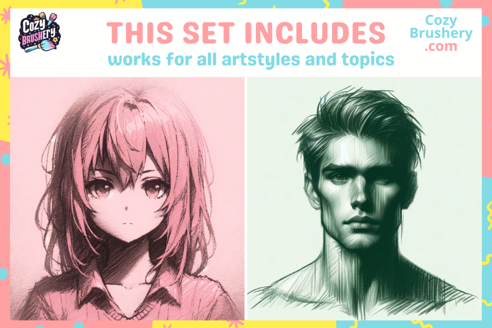 With 55 hand-painted brushes, this set brings that playful, nostalgic feel straight to your screen—perfect for adding warmth, texture, and whimsy to your art. From chunky, bold lines to soft, smudgy fills, each brush feels like classic crayon on paper.