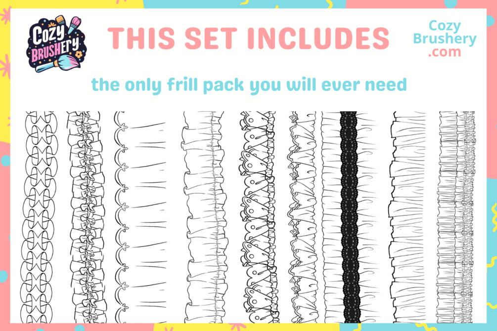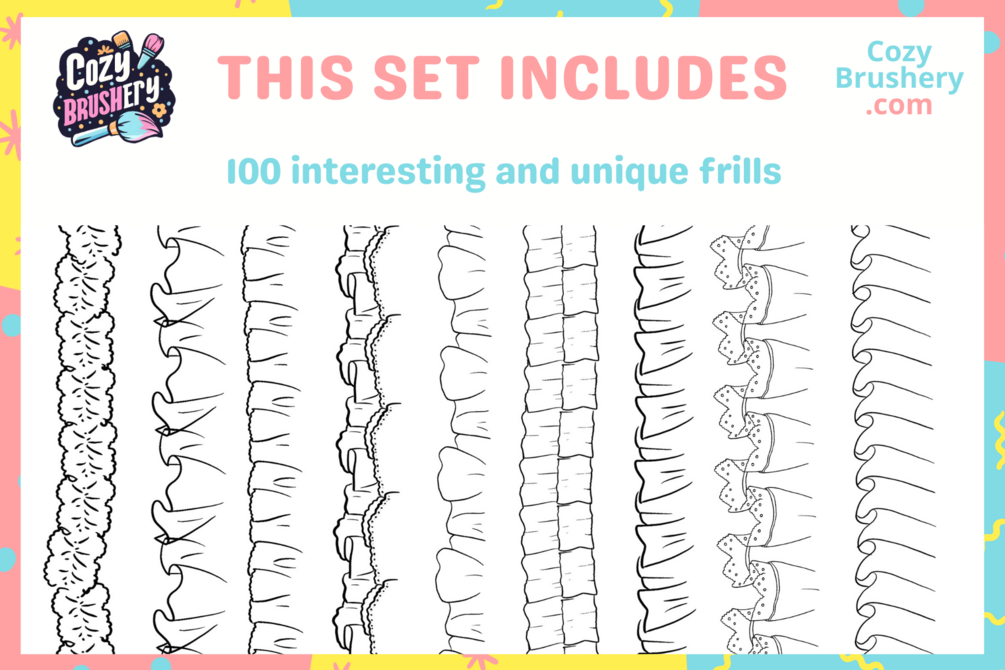 Ultimate Frill Brush Collection: 100 Varied Frills for Dresses and Skirts in Procreate, Ruffle Brushes