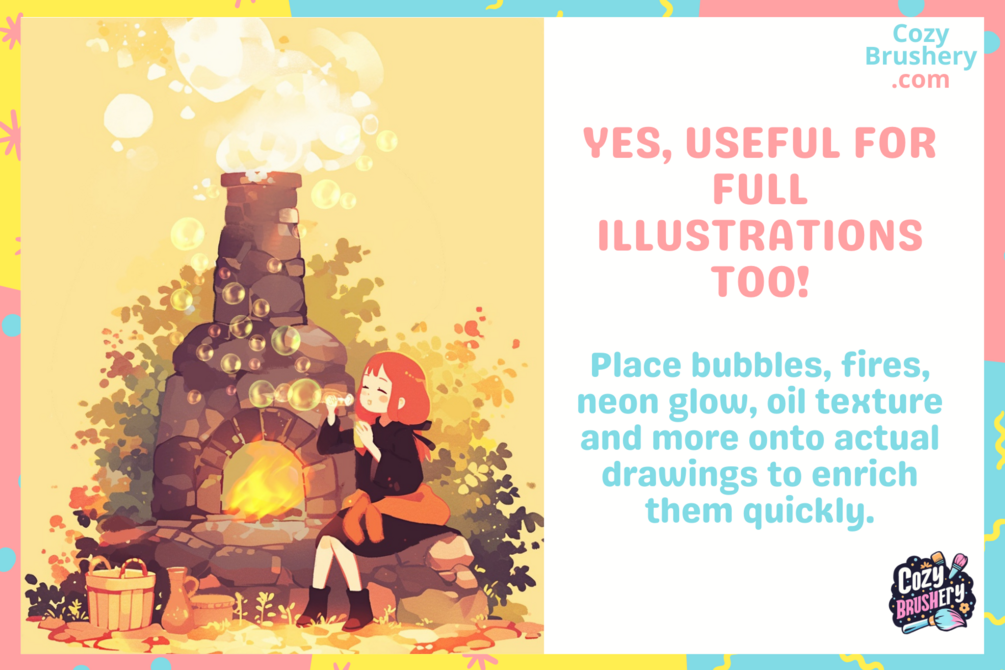 FREE Procreate Brushes Fun Minimalist: Dreamy Escapade Pack, 9 Fun Brushes for Instant Magic, Fire, Bubbles, Ink, Neon, and More