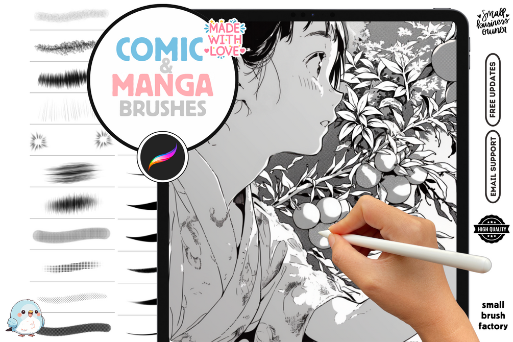 FREE Procreate Manga Brushes: Manga Master Studio, Lineart, Fill, Hatching, Halftones, and Effects for Manga and Comics