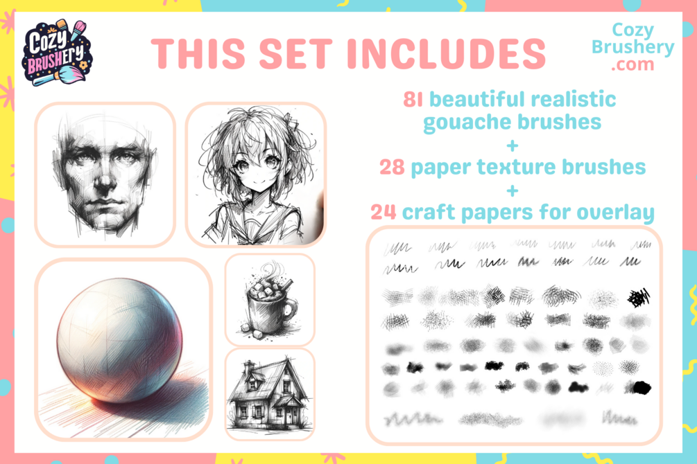 Dive into the world of sketching and drawing with this comprehensive set of 81 Pencil Brushes for Procreate! Designed for artists who adore pencil textures and lineart, this pack also includes 28 unique paper textures and 24 craft papers for overlays. These brushes and textures are perfect for creating everything from detailed pencil lineart to vibrant colored pencil drawings. The additional craft paper overlays offer that extra papery texture, giving your artwork a distinctive and authentic feel.