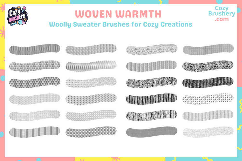 Procreate Brushes: Wooly Wonder, 87 Cozy Sweater Pullover Texture Brushes for Warm and Fuzzy Artworks, for Fashion and Comfort Scenes