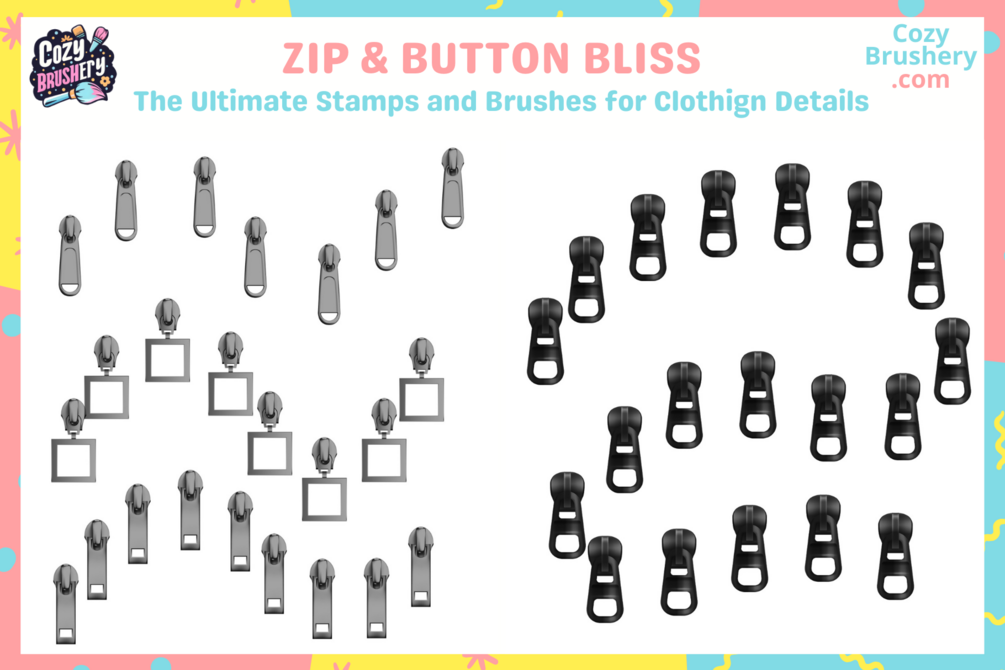 FREE Procreate Brushes and Stamps: Closure Chic, 45 Button and Zipper Brushes for Detailed Fashion Sketches, Ideal for Clothing and Accessory